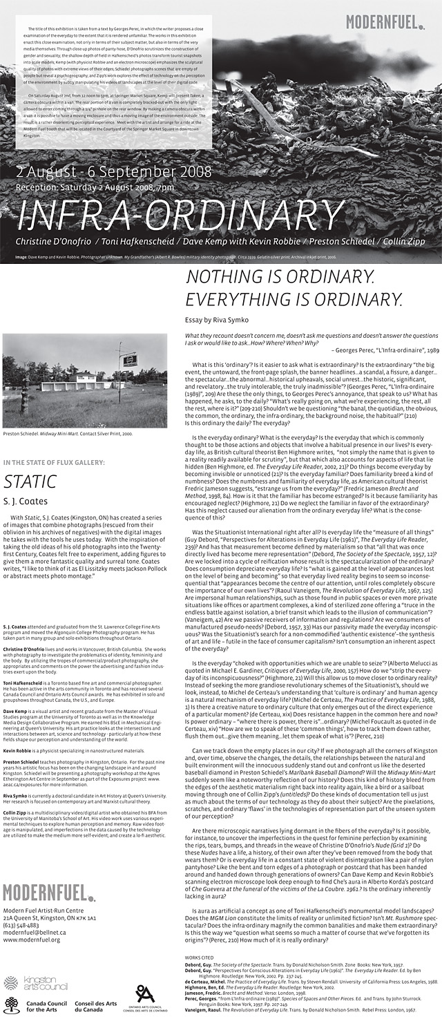 2008 Infra-Ordinary Modern Fuel Gallery Curated by Michael Davidge, Kingston ON