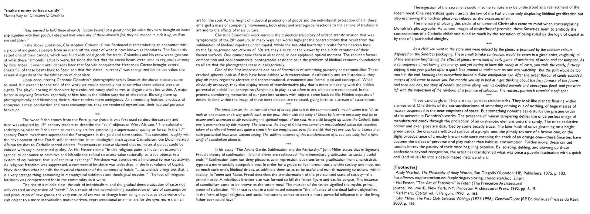 2004 Marina Roy "make money to have candy” Strange Agencies Helen Pitt Gallery Vancouver BC